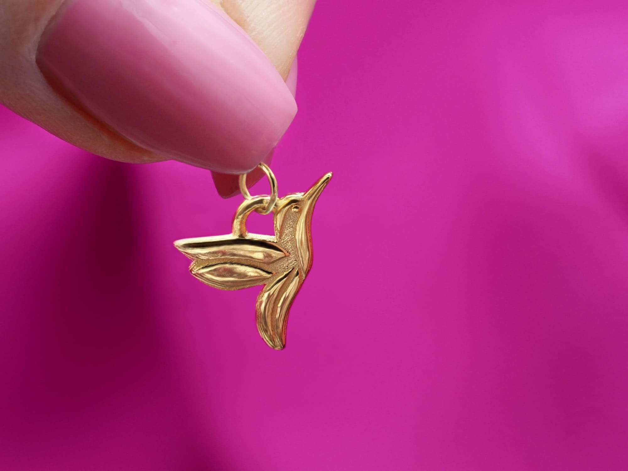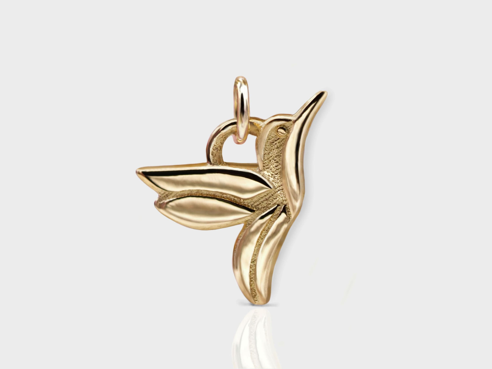 Ein zarter Kolibri Anhänger aus hochwertigem vergoldetem 925er Sterling Silber made in Germany. Im Gegensatz zu den 750er Gold Kolibris wird auf diese Anhänger eine dünne Goldschicht aufgetragen - dadurch erhalten sie einen erschwinglichen Preis für einen ebenfalls edlen und goldenen Look. Vor allem aber wird dieser Anhänger mit liebevoller Handarbeit geschaffen und ist ein ganz besonderes Geschenk von Herzen.