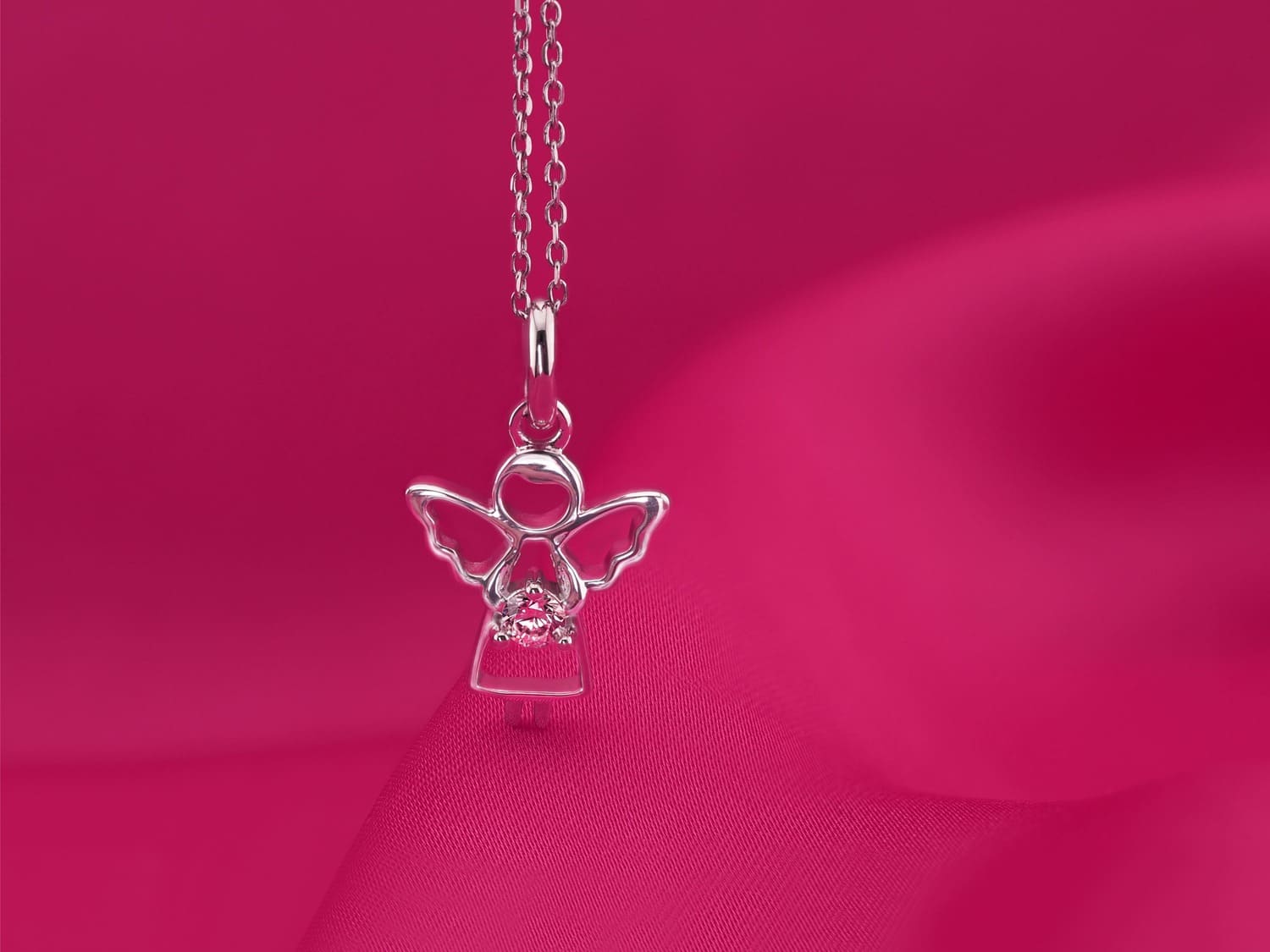 Diese schlichte und edle Schutzengel Kette bewacht Deinen Lieblingsmenschen - ob groß oder klein - und ist ein ganz besonderes Geschenk. Denn wenn wir in unserer Mitte sind, dann sind wir unbesiegbar und genau dort sitzt der wunderschön funkelnde Zirkonia Stein des Engels - im Powerpunkt. Das Schmuckstück ist aus hochwertigem rhodiniertem 925er Sterling Silber gefertigt und wird durch eine feine Kette ergänzt, die durch einen speziellen Facettenschliff zart im Licht funkelt und sich der Haut ganz weich und liebevoll anschmiegt.