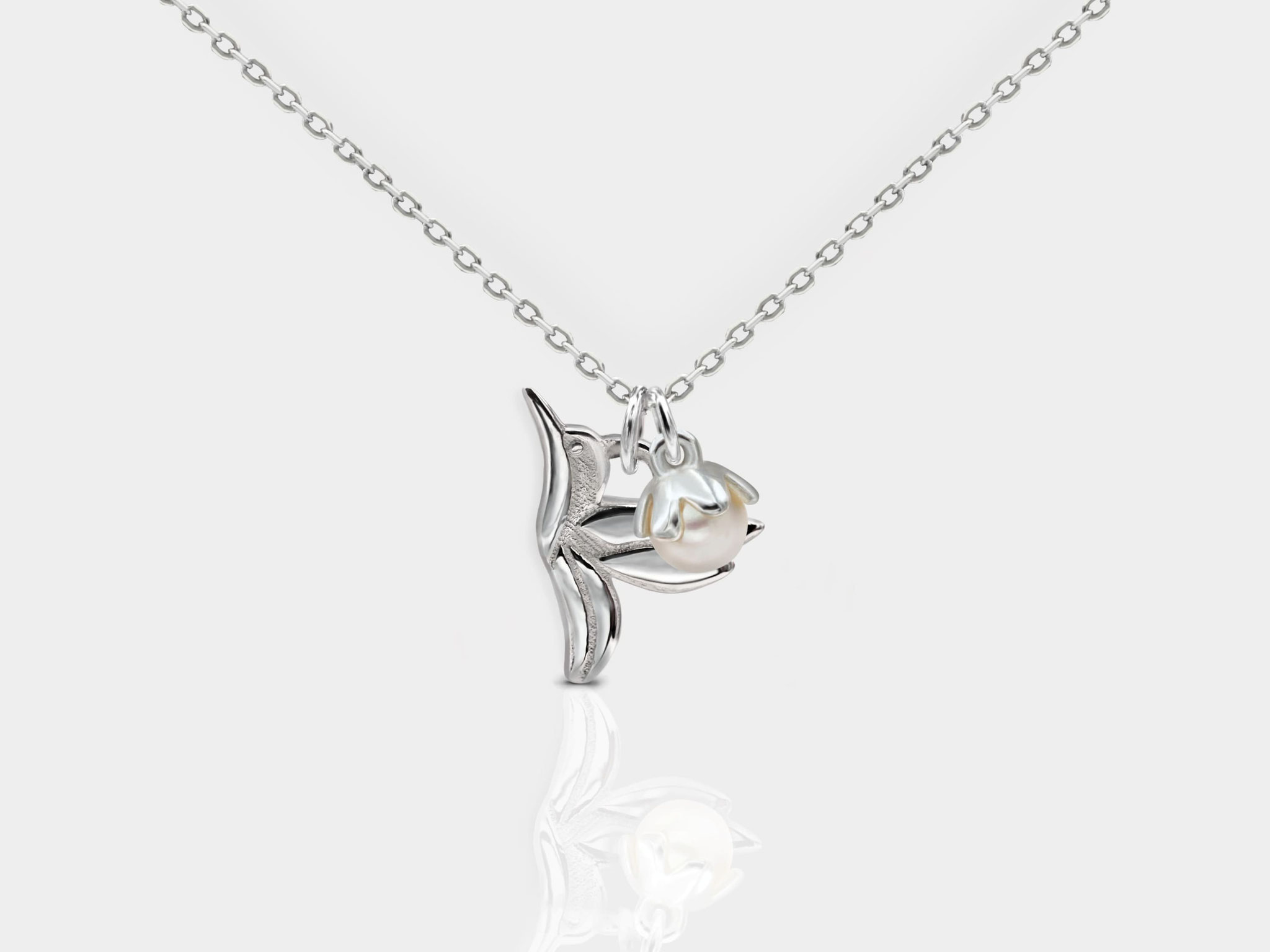 Eine filigrane glänzende Kette aus 925er Sterling Silber mit einer wunderschönen Kombination aus einem zarten Kolibri & Mini Perlen Anhänger. Ich liebe, dass die Kette leicht verspielt und zugleich sehr edel ist. Sie kann je nach Belieben selber bestückt werden und ist zudem ein perfektes Basic-Teil, auf das auch kleine Anhänger passen.