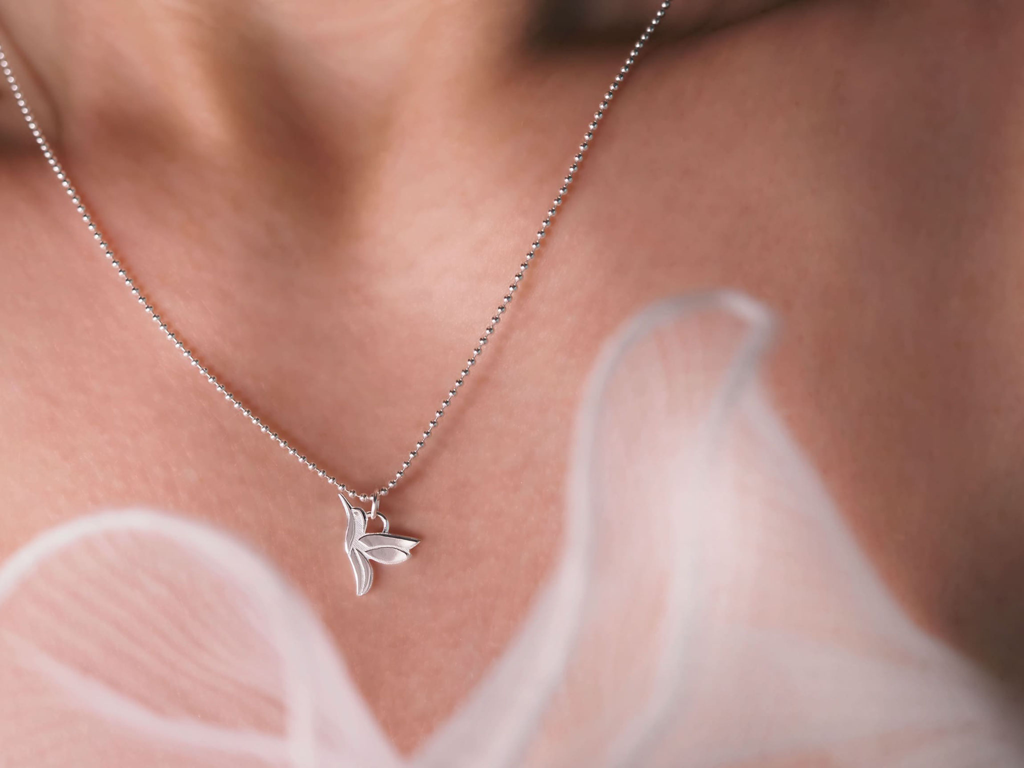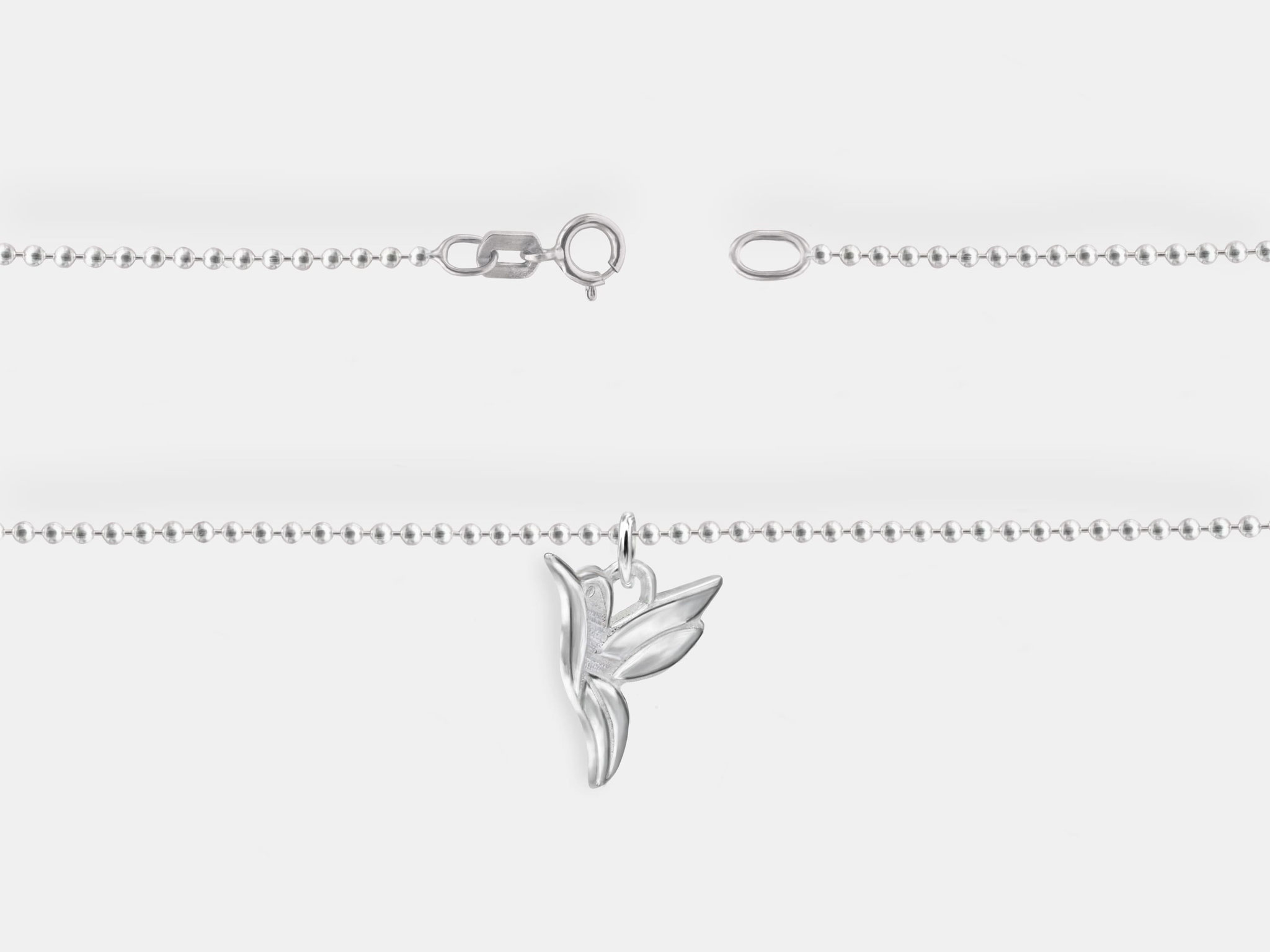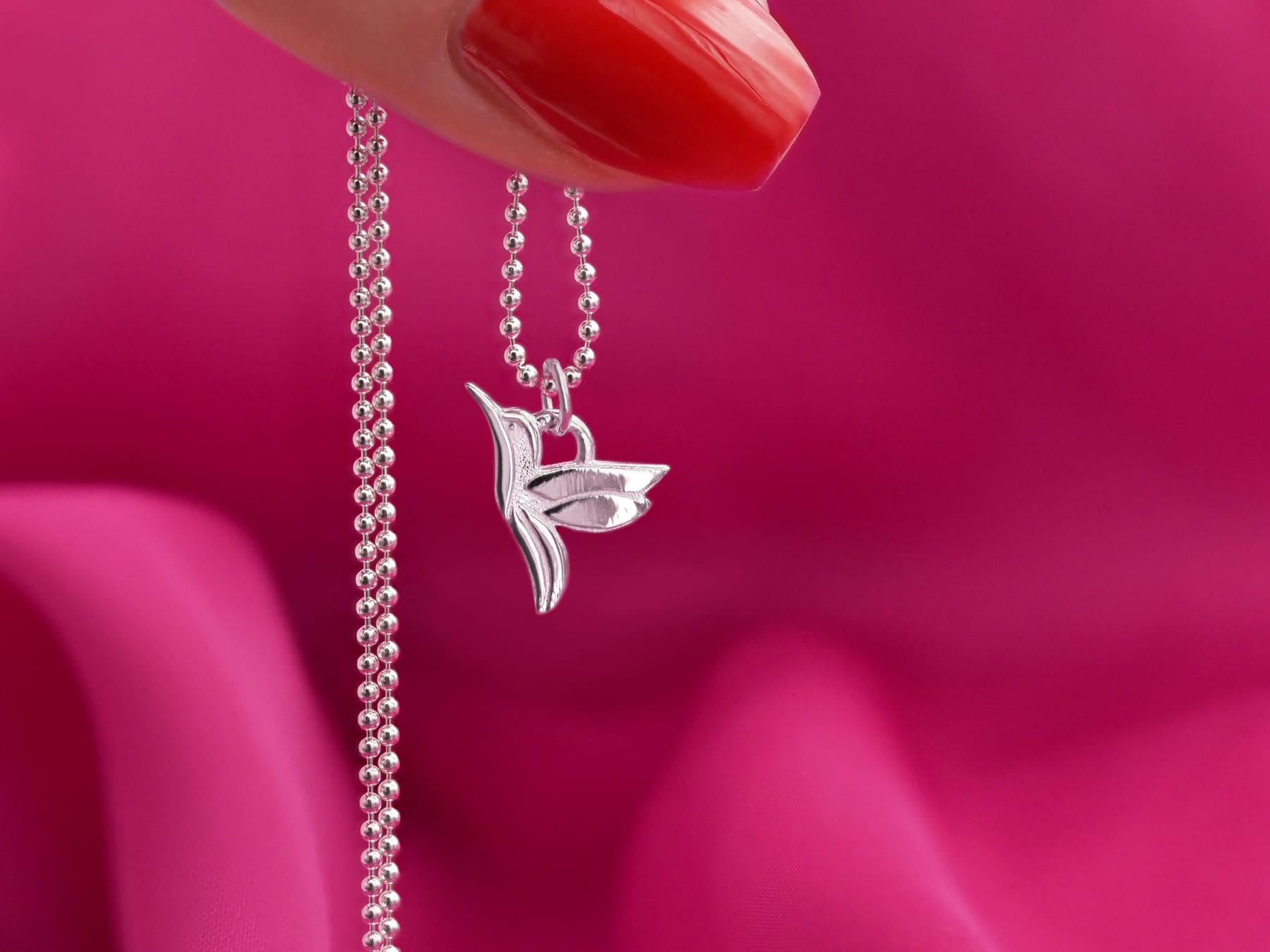 Eine filigrane Kugelkette aus 925er Sterling Silber mit zartem Kolibri Anhänger. Durch seine Hochglanz-matt Kombi erhält der Vogel Anhänger einen schlichten und modernen Look. Im Zusammenspiel beider Komponenten, entsteht ein sehr schöner Kontrast zwischen dem minimalistischen Anhänger und der leicht verspielten Kette. Jeder Kolibri wird mit liebevoller Handarbeit in Deutschland geschliffen & ist einzigartig.